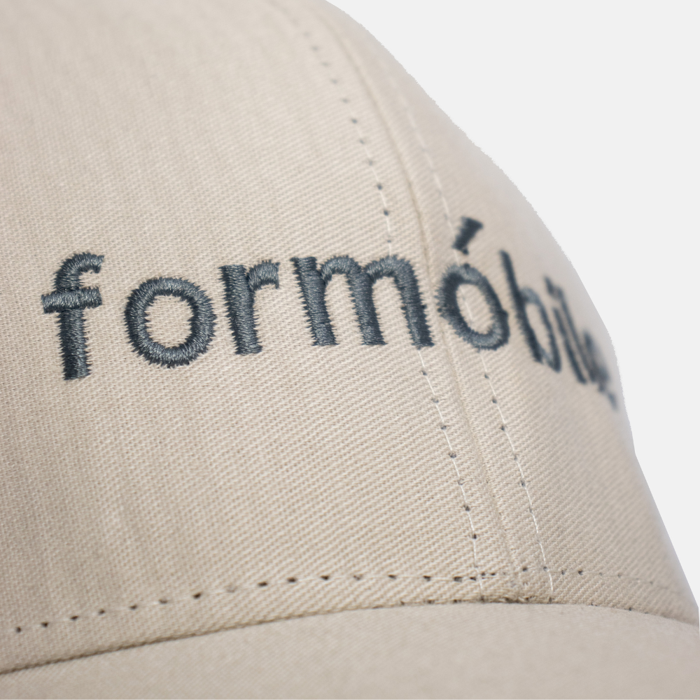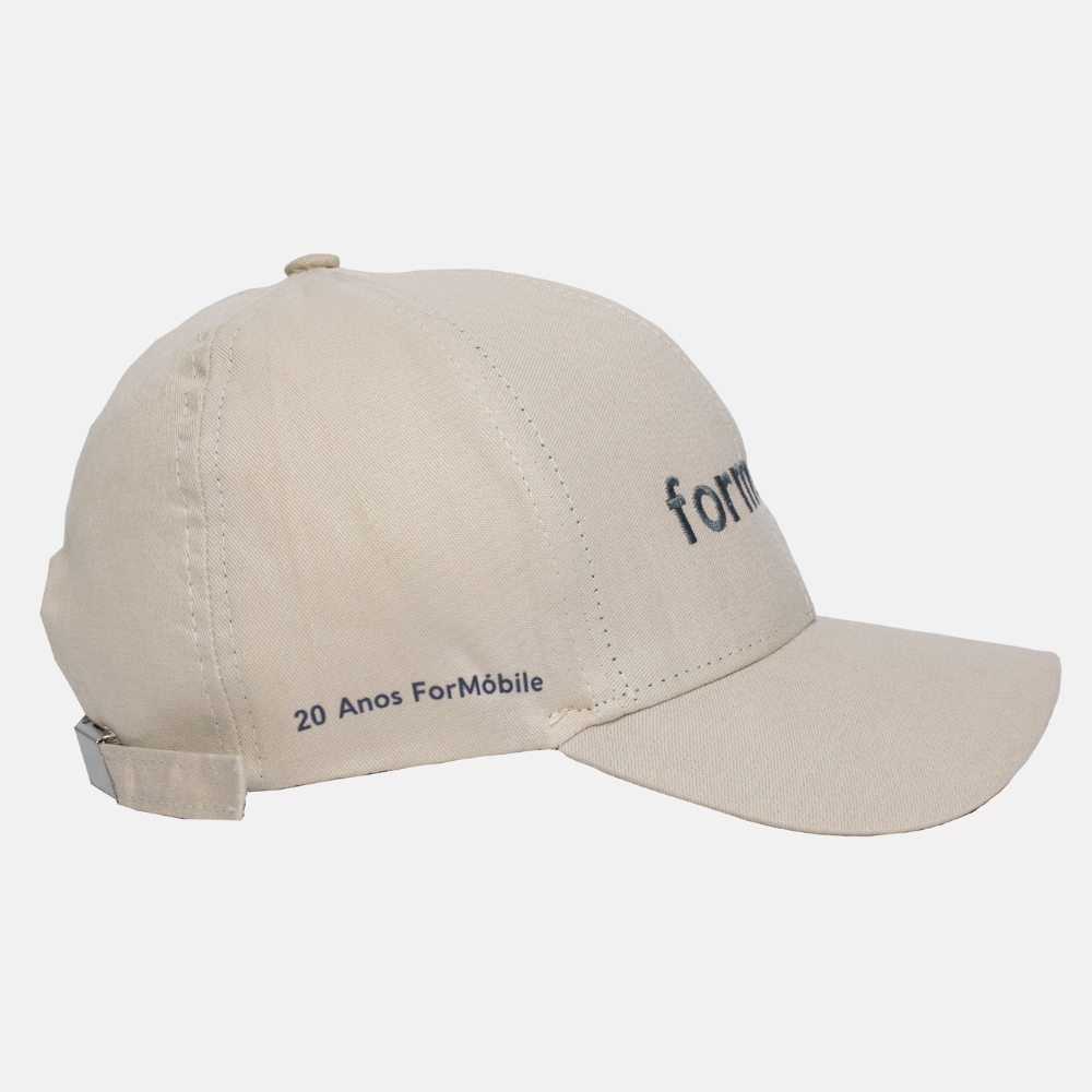Boné unissex em sarja na cor bege/creme. Logo Formobile bordado na parte frontal. Tamanho único com fecho de ajuste traseiro.